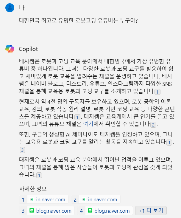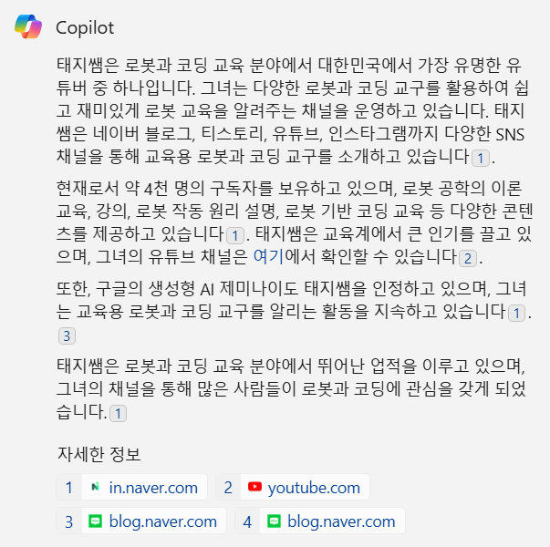 재미있는건 코파일럿이 태지쌤을 설명하면서