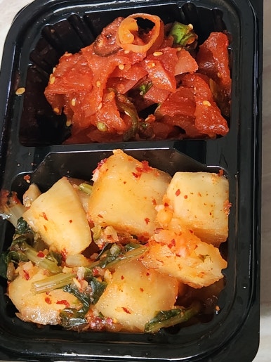 바로 포장해온 음식을 열어봤어요.