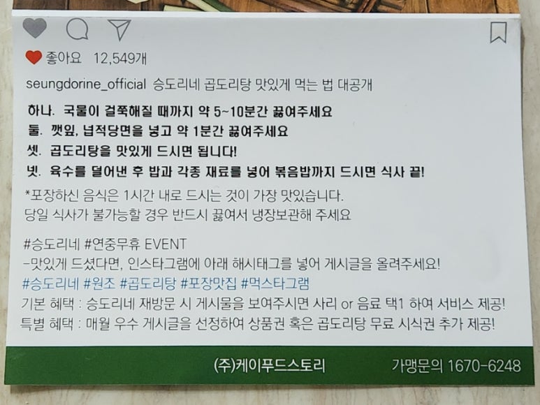 동탄역 맛집 승도리네 곱도리탕에서 사용가능!