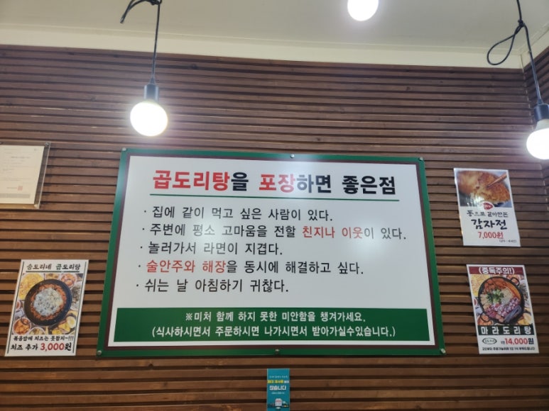 식당 내부에 걸려져있는 내용을 훑어봤어요.