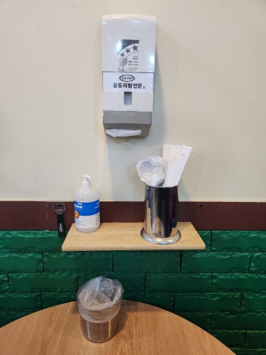 휴지, 식기류가 테이블 위가 아닌