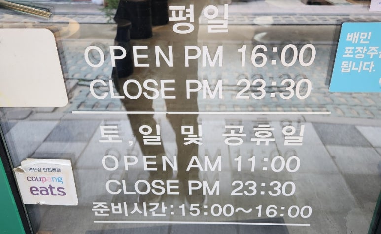 평일은 오후4시부터 23시 30분까지