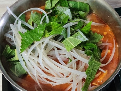 어느 정도 끓으면 넓적 당면을 추가해줬구요.