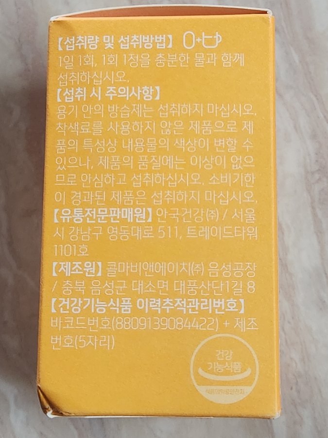 1일 1회 1정 충분한 물과 함께 섭취구요.