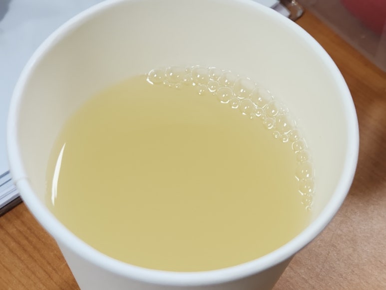 사무실 도착 후 큰 종이컵에 따라봤어요.