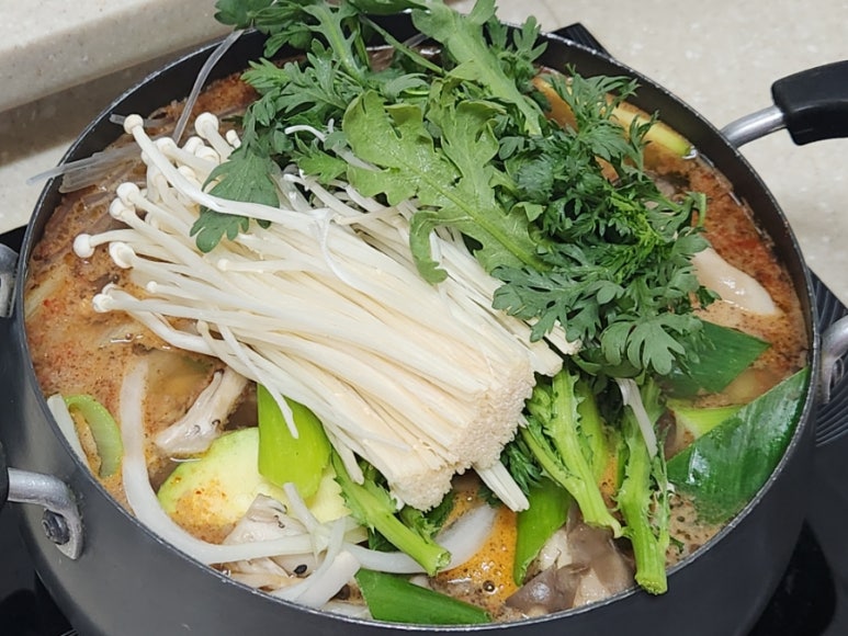 버섯전골이라서 숙소에서