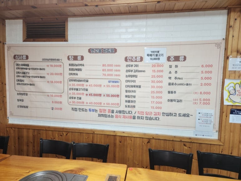 포천 산정호수 맛집 옛고을의 메뉴에요.
