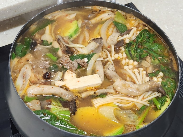 완성된 손두부야생버섯전골