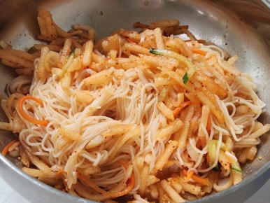 아주 가늘게 썰어져있어요.