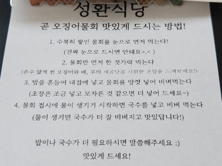 성환식당의 곧오징어물회를