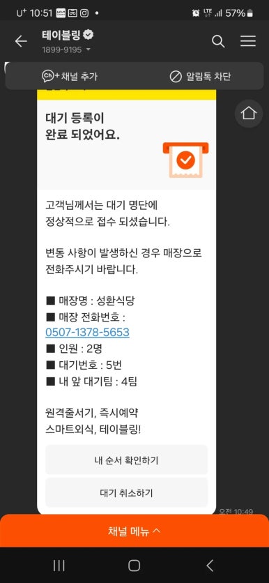 테이블링 앱으로 대기 걸 수 있지만