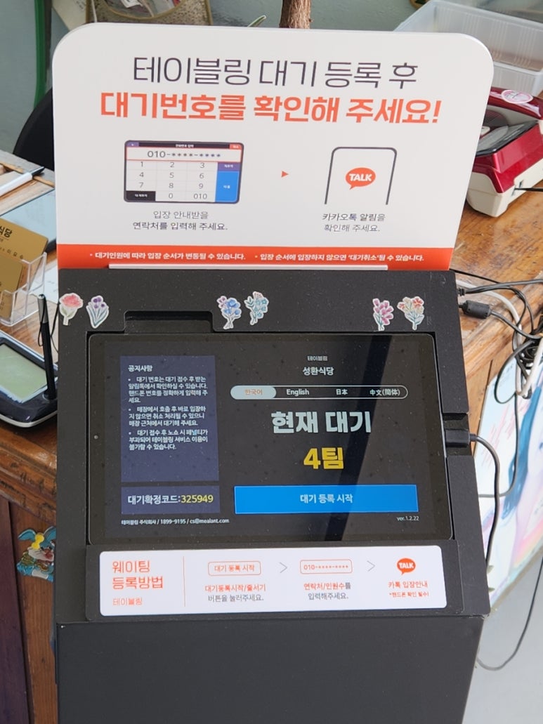 식당 도착하시면 가장 먼저 테이블링 기계에