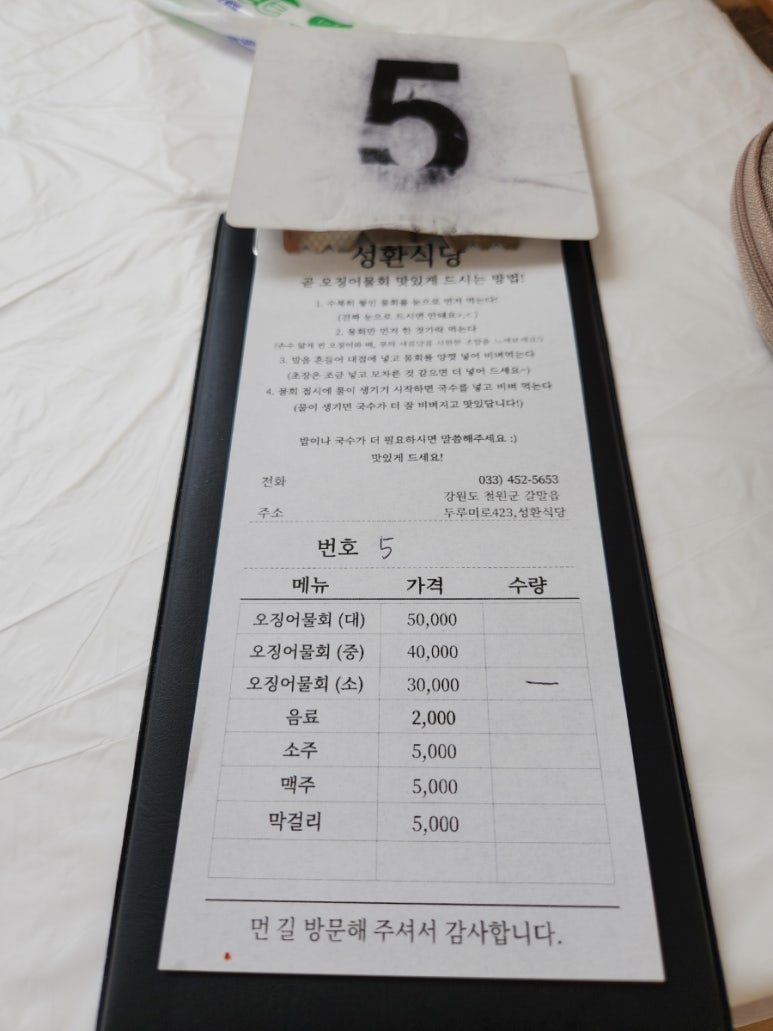 철원 고석정맛집 성환식당의 차림표는 단순합니다.