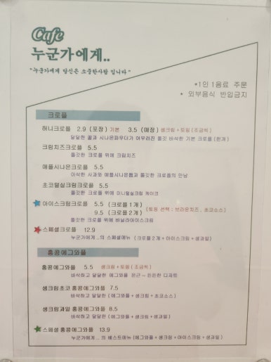 그리고 입간판에 있는 다양한 디저트가 보여서