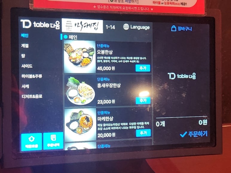 메인메뉴부터 계절, 탕, 사이드, 주류까지
