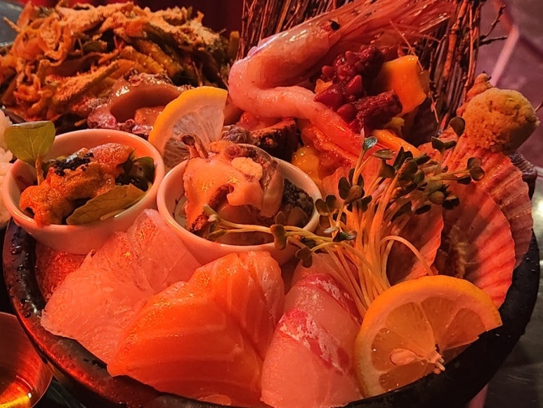 숙성회 등 해산물 총집합이라고 설명되어있죠?