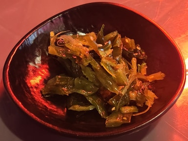 마케집 수원역점의 기본 안주는 미역무침이에요.