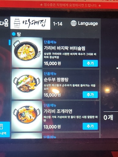 그리고 메뉴를 선택하면 어떤 메뉴인지