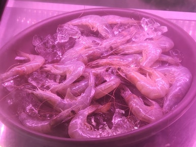 각종 해산물이 종류별로 신선하게 담겨있어요.