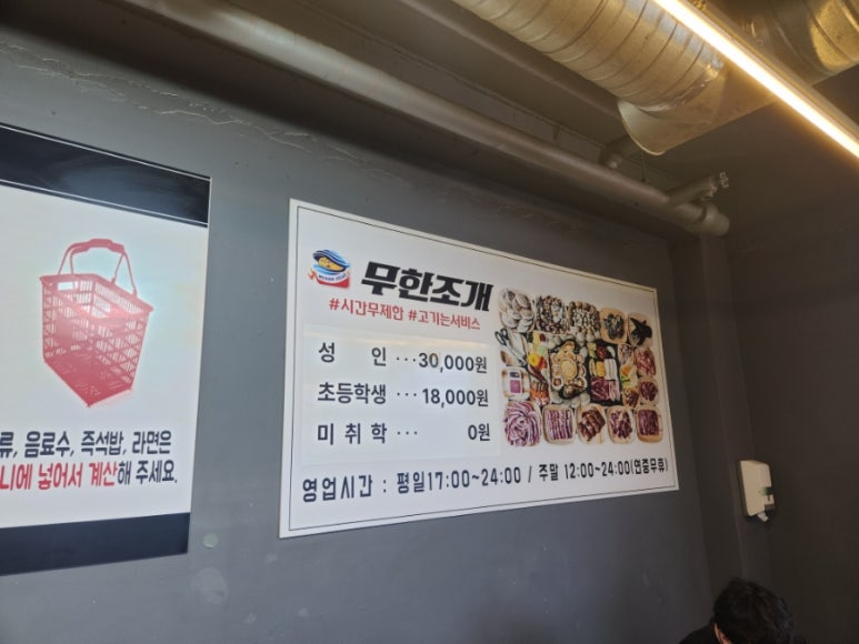 조개 무한리필이 크게 걸려있더라구요.