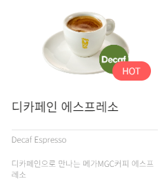 홈페이지상으로는 디카페인 에스프레소는 있는데