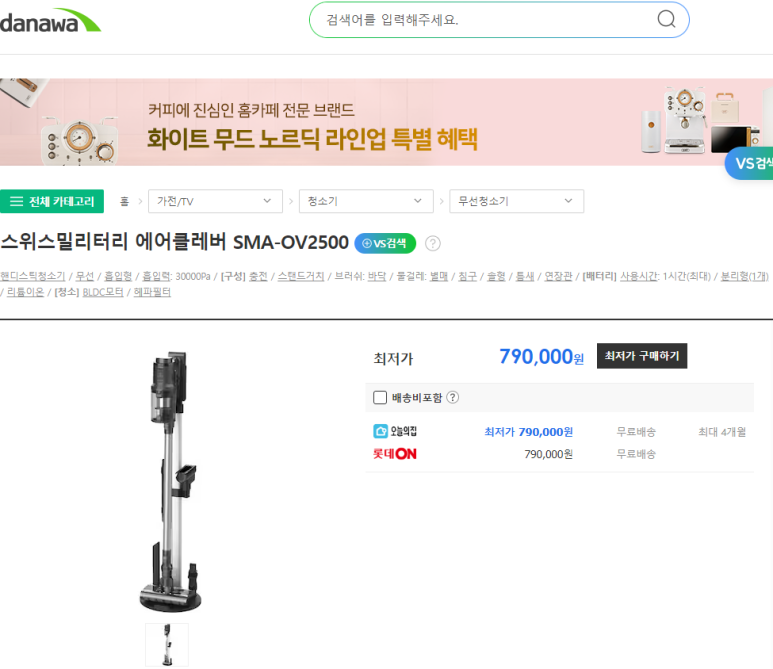 다나와에서 스위스밀리터리 무선청소기