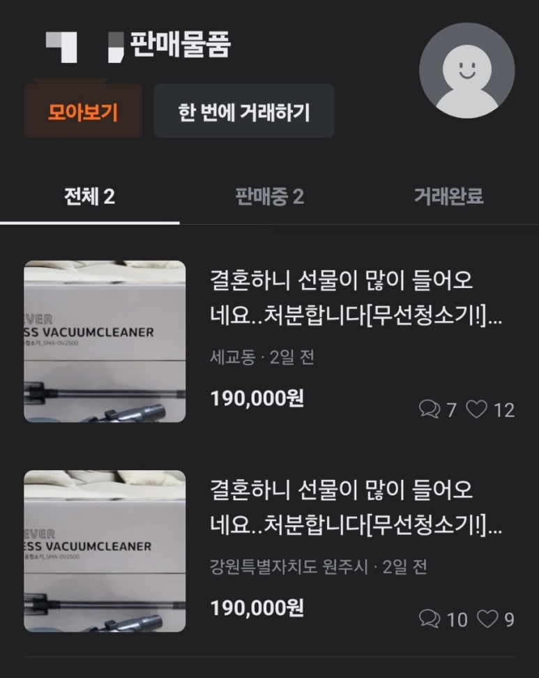 당근마켓에서 사기치기 위해서 만든 계정이에요.