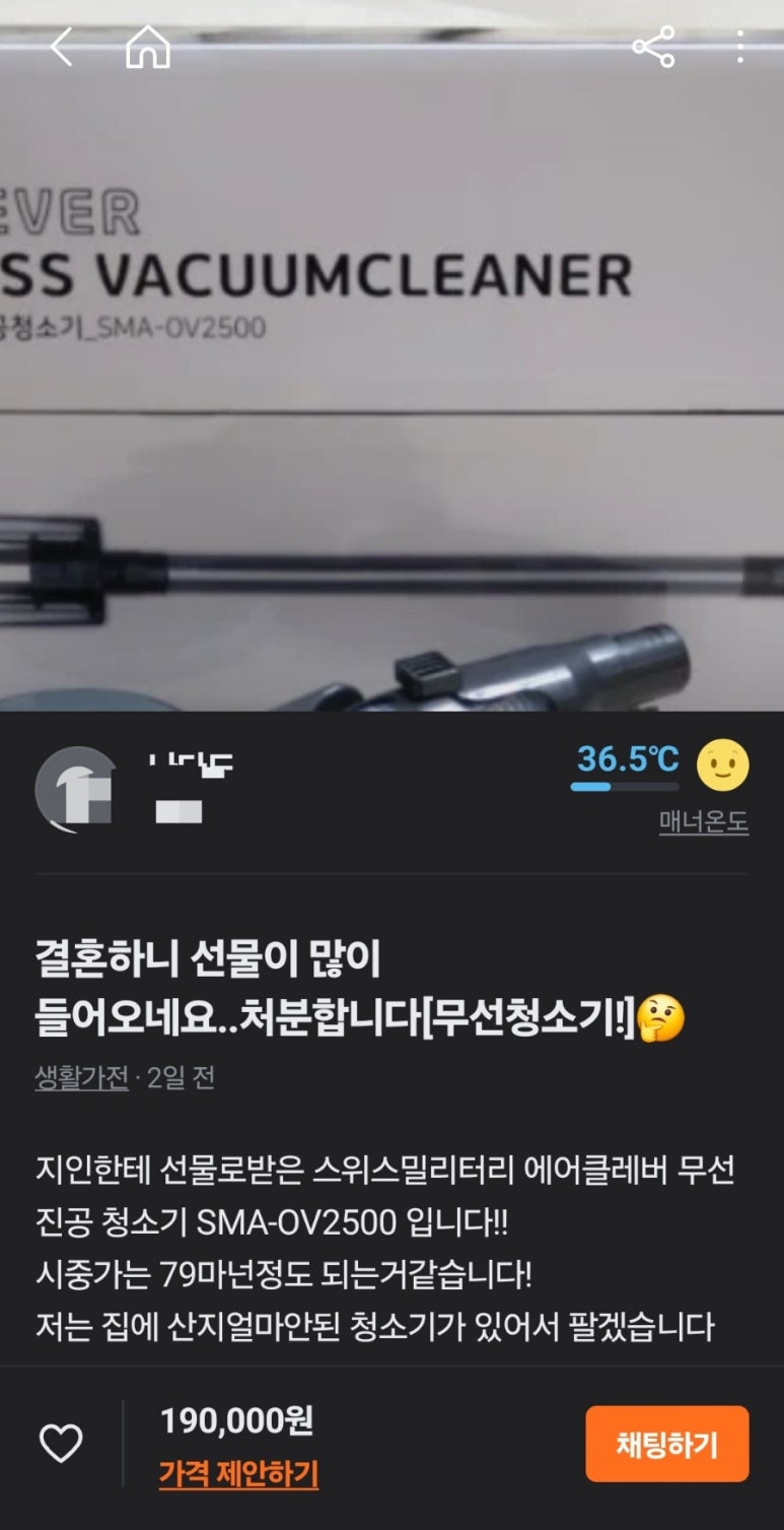 듣보잡 스위스 무선청소기를 선물하시겠어요?