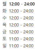 주말에는 11시부터, 평일에는 12시 오픈이구요.