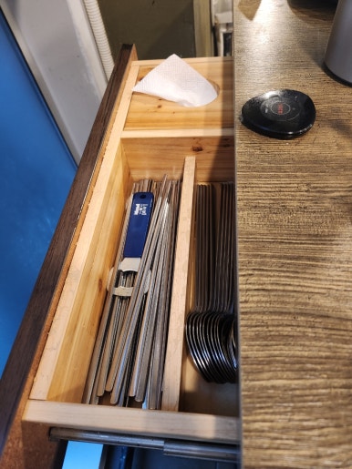 식기류와 티슈는 테이블 옆에서 꺼낼 수 있어요.