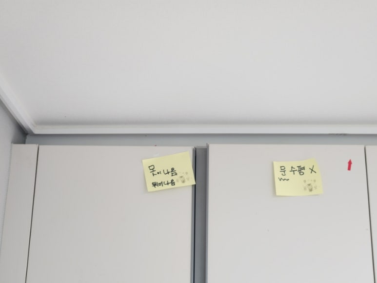 문이 완전 꽉 밀어줘야 겨우 닫혀요.