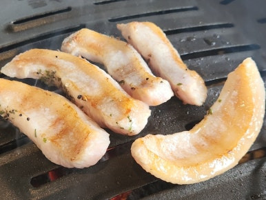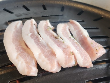 삼겹살보다 얇아서 굽는것도 금방이더라구요.