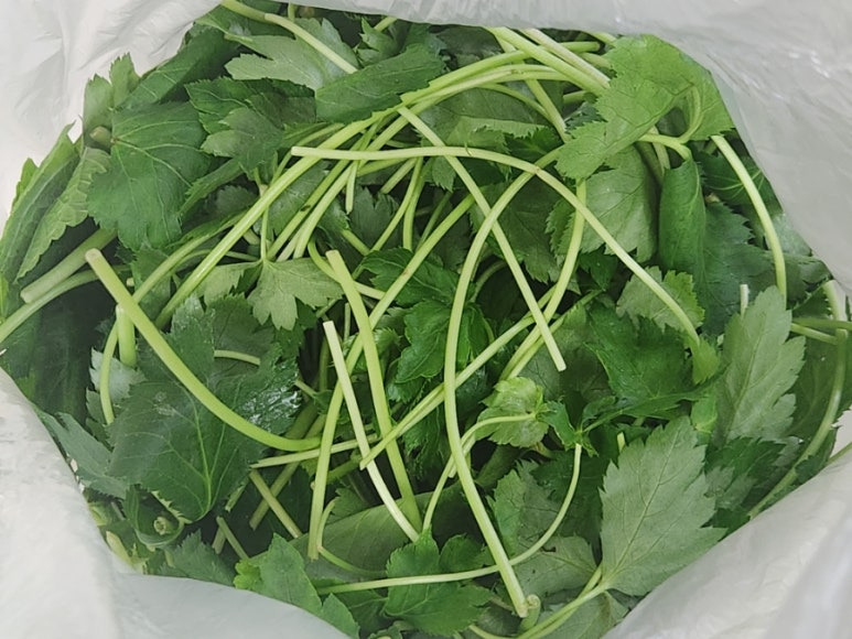 진짜 미나리를 비닐팩 한가득 넣어주셔서