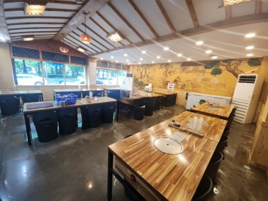 식당의 천정이 한옥 느낌이고