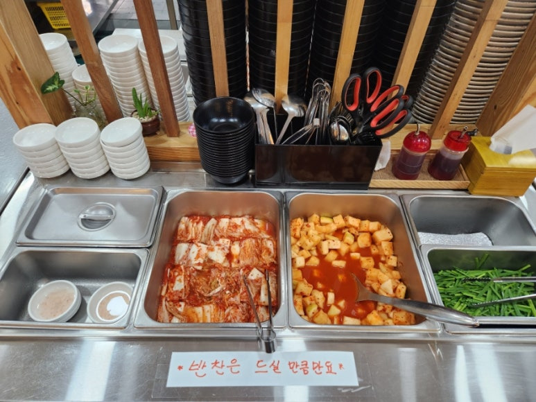 각종 김치류와 깍두기를 마음껏 먹을 수 있구요~