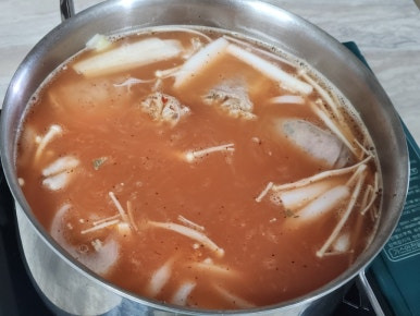 건더기 먹고 남은 전골 국물에