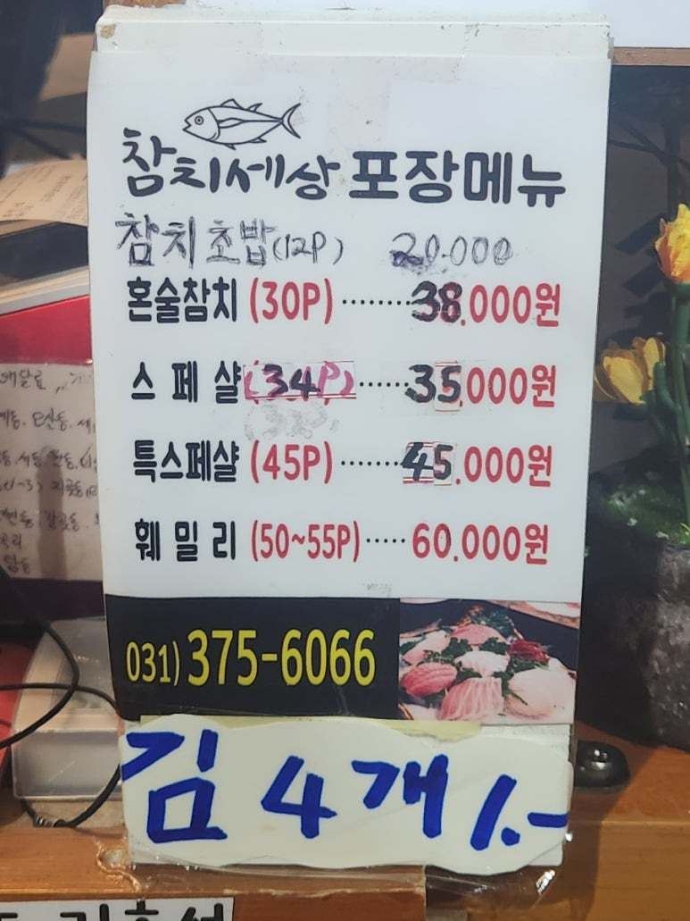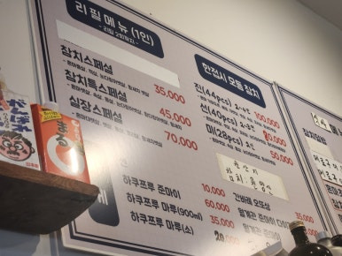 리필메뉴는 참치스페셜 35000원이 기본이에요.