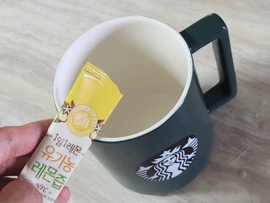 스타벅스 머그컵에 레몬즙 넣고