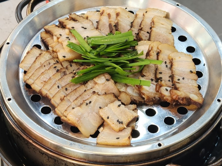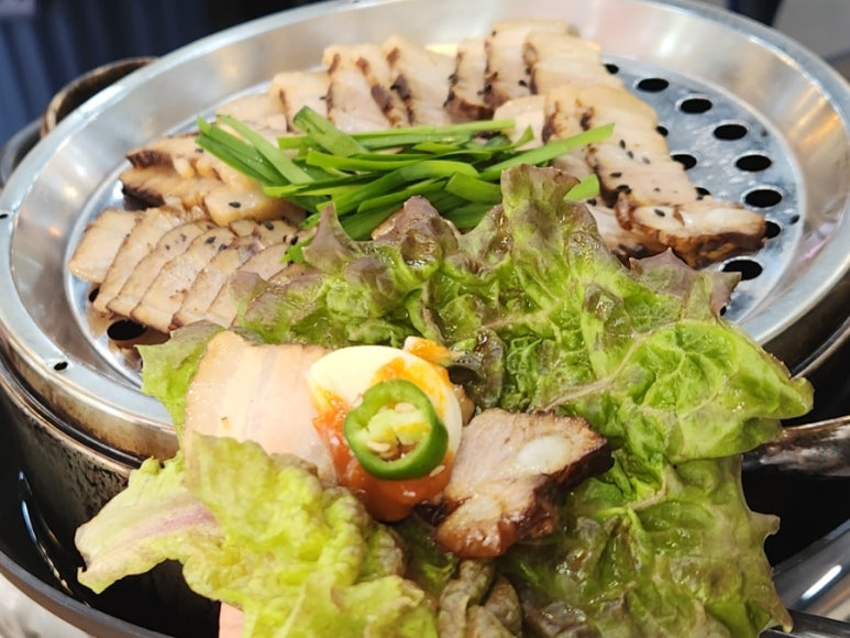 수육을 시켰더니 상추 쌈과 마늘, 장도 나왔어요.