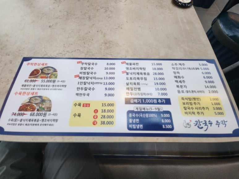 오산칼국수맛집 칼국수주막의 메뉴에요.