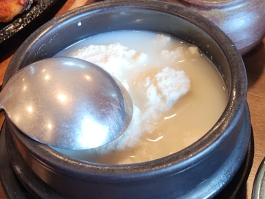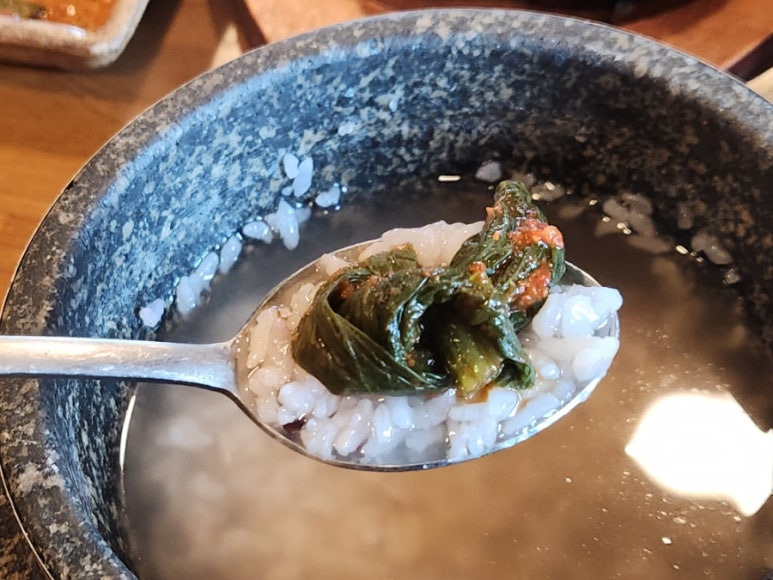 돌솥에 물 부어서 누룽지 만든 다음에