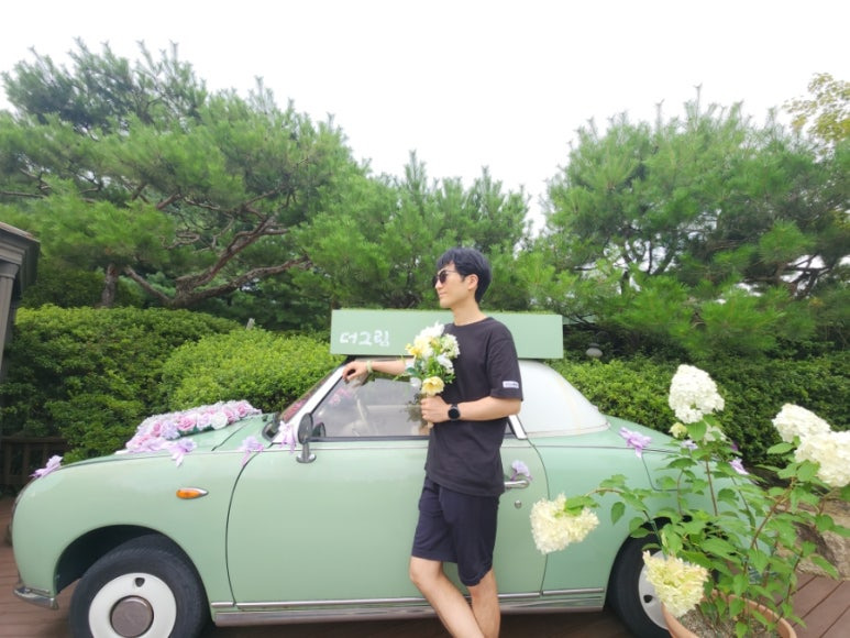 입구 쪽에는 예쁜 자동차가 있더라구요.