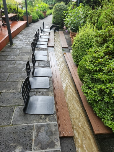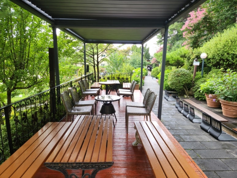 무더운 여름이라서 야외 테이블이 인기 없었지만