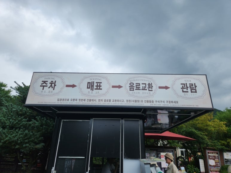 1) 주차 2) 매표 3) 음료교환 4) 관람