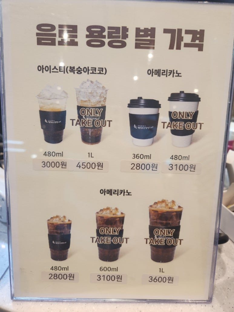 커피 가격도 스타벅스보다는 저렴한 편이에요.