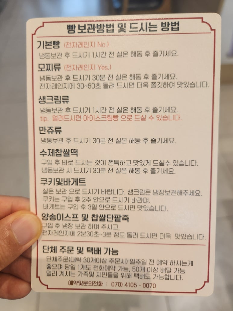 빵 보관방법도 잘 안내되어있구요.