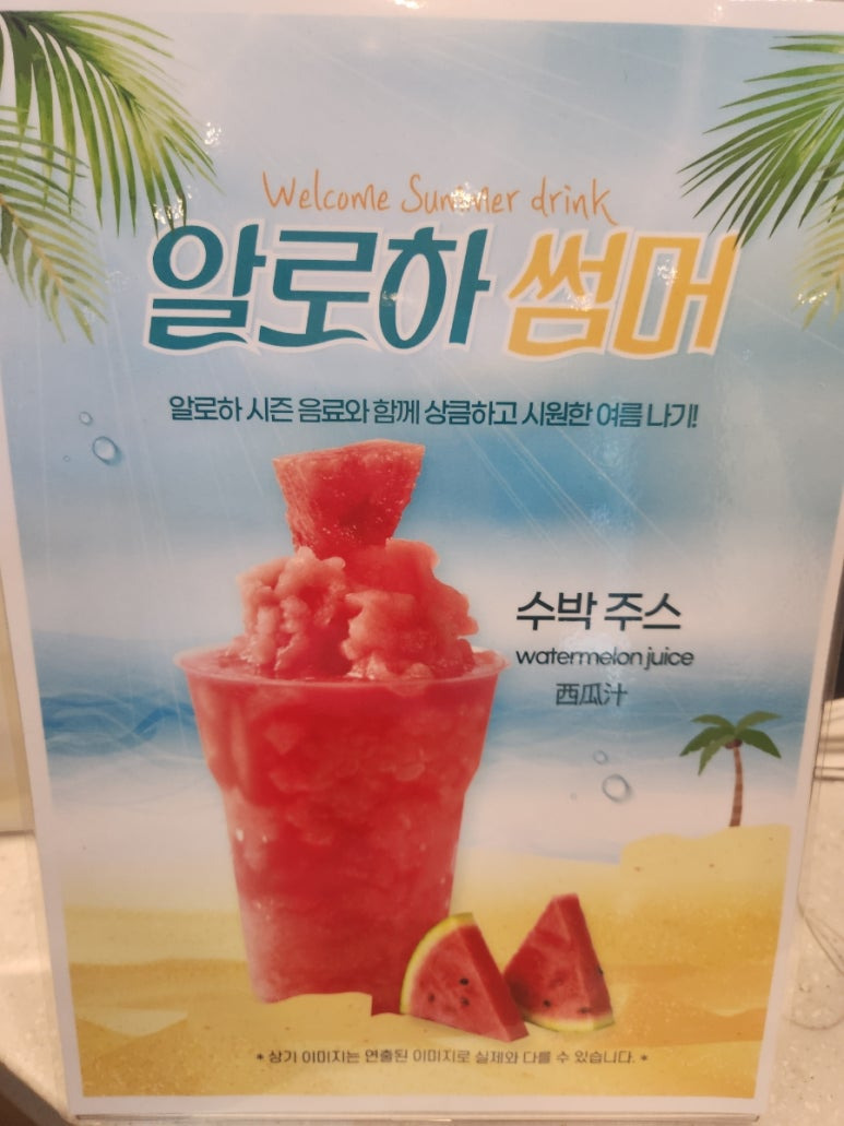 저는 여름 시즌 음료로 수박 주스를 주문했어요.