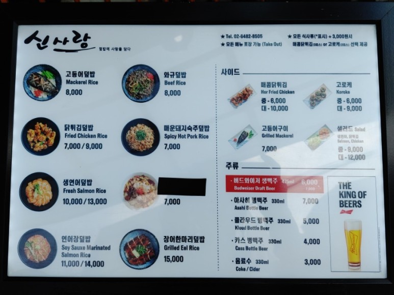 신사랑, 덮밥에 사랑을 담다라는 뜻이에요.