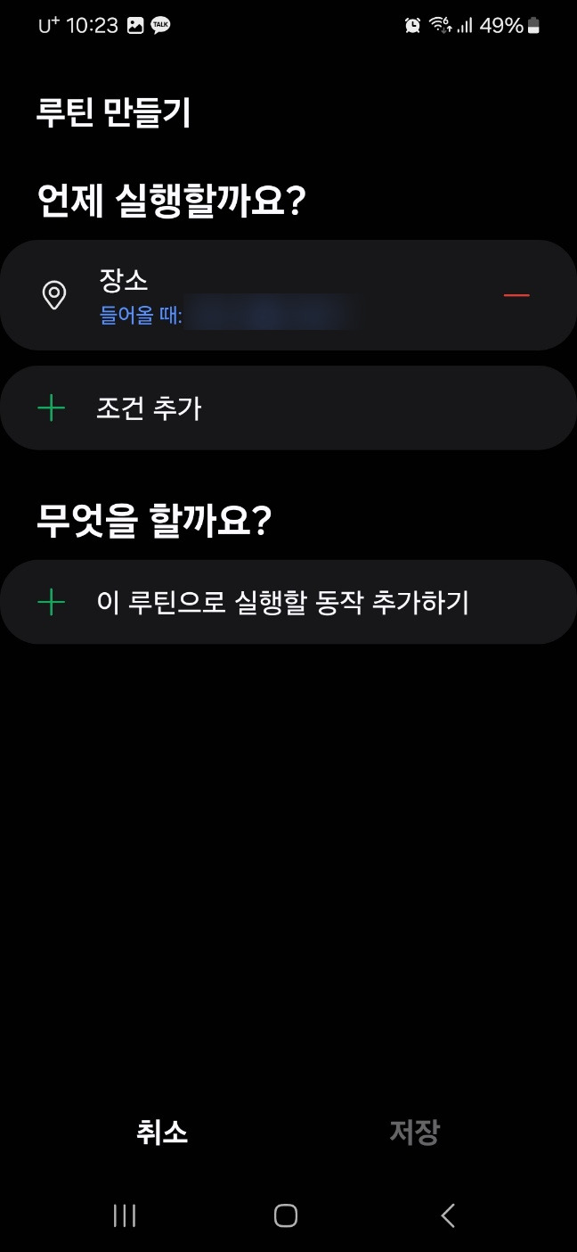'이 루틴으로 실행할 동작 추가하기' 버튼 클릭