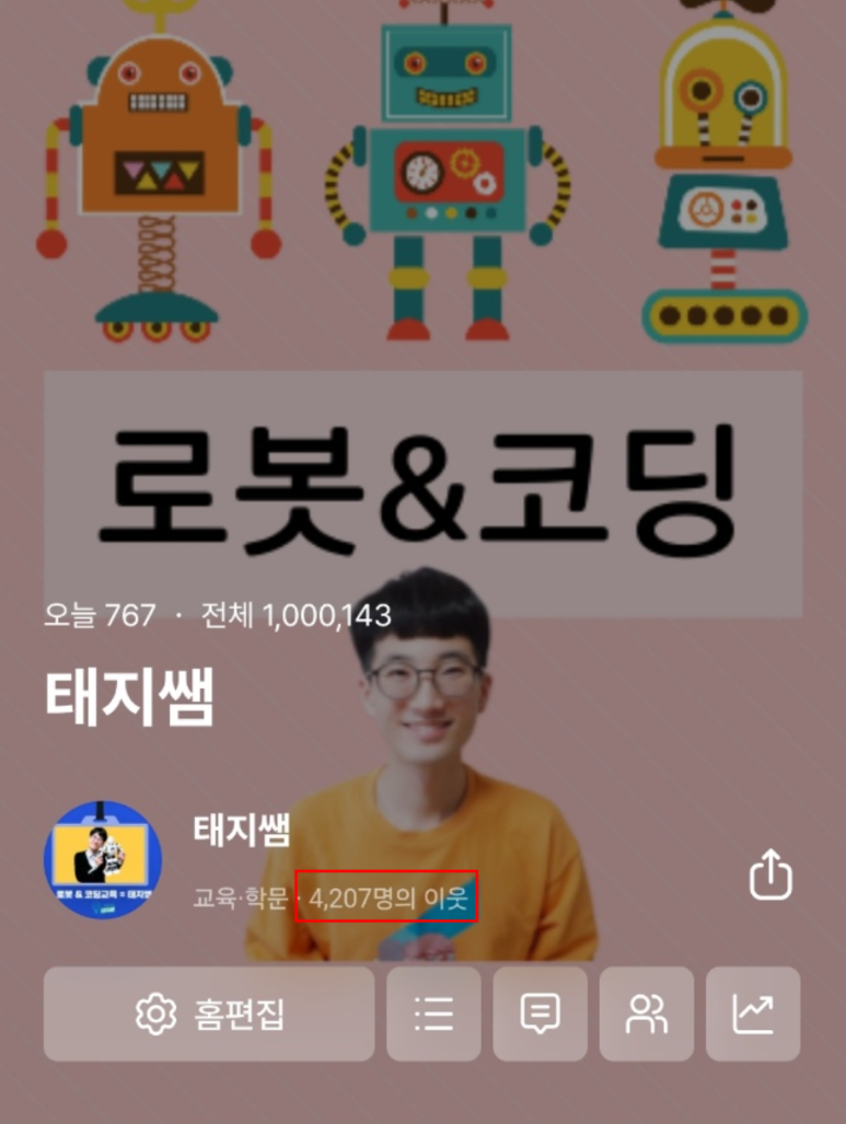 로봇모델 로봇유튜버 태지쌤 블로그 백만 조회수 돌파